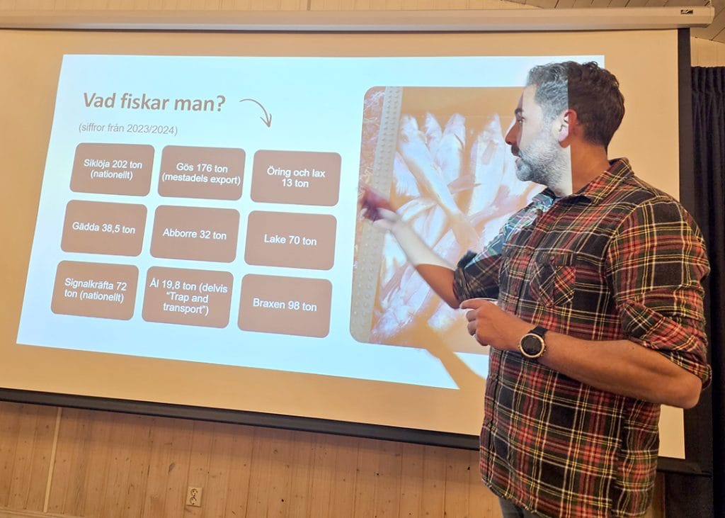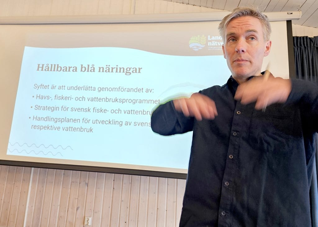 Vidare berättade John Zafaradl om hur leaderområdena runt Vänern samverkar för att stärka insjöfisket, och Carl Dahlberg redogjorde för syftet med EU:s havs-, fiskeri- och vattenbruksprogram. Han gav även en aktuell lägesbild av programperioden och öppnade upp för inspel inför kommande period.