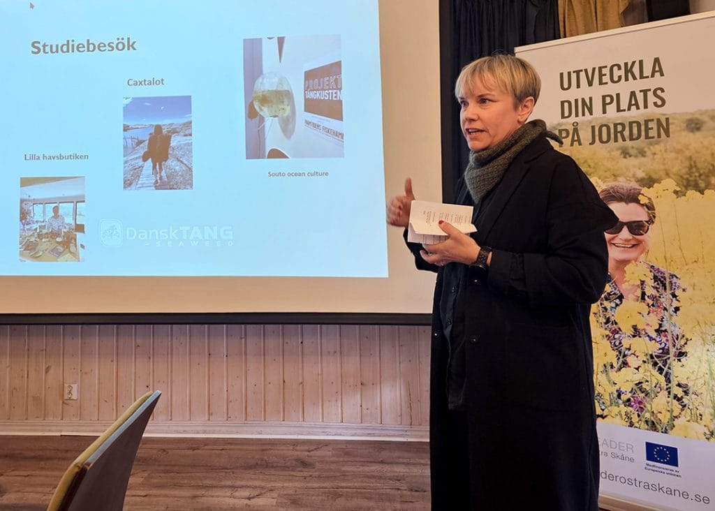 Studiebesök på Gårdsfisk, projekt om havsalger och vattenvård samt internationella perspektiv när Blå Leaderträff hölls i Östra Skåne.