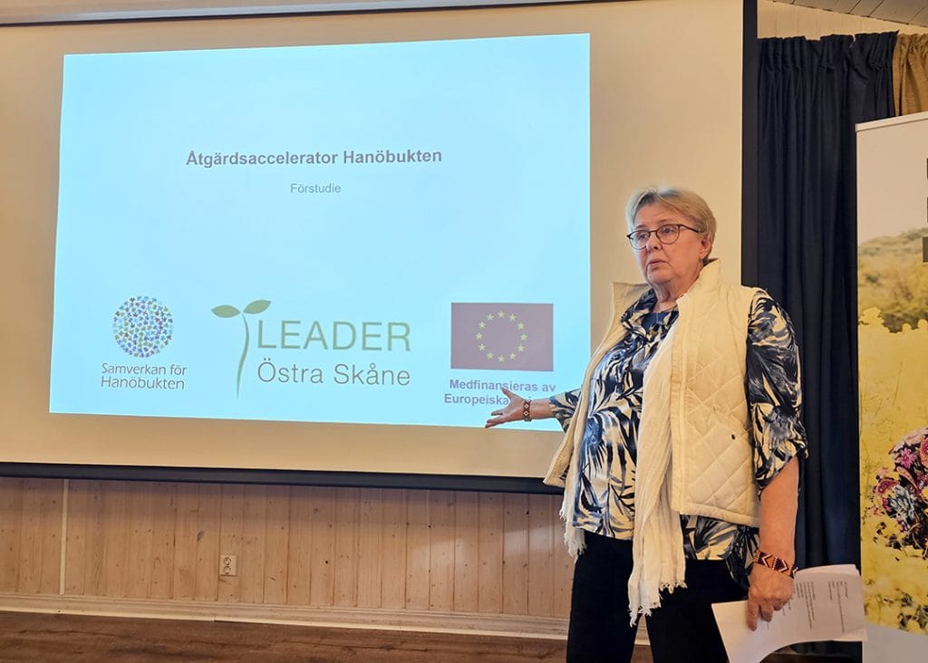 Därefter fortsatte konferensen på Breanäs Hotell vid Immeln. Programmet rymde projektpresentationer från Havsalger på tallriken (Frida Hejdedal) och Förstudie Åtgärdsaccelerator Hanöbukten (Annelie Worgaard). Deltagarna fick även ta del av internationella perspektiv genom en presentation från Nederländerna, liksom inspel från Marint centrum i Simrishamn genom Vesa Tschernijs presentation. Agne Andersson, tidigare kommunekolog och leaderledamot, delade med sig av sina erfarenheter och beskrev hur Leader varit avgörande för genomförandet av de många vattenvårdsprojekt han drivit.